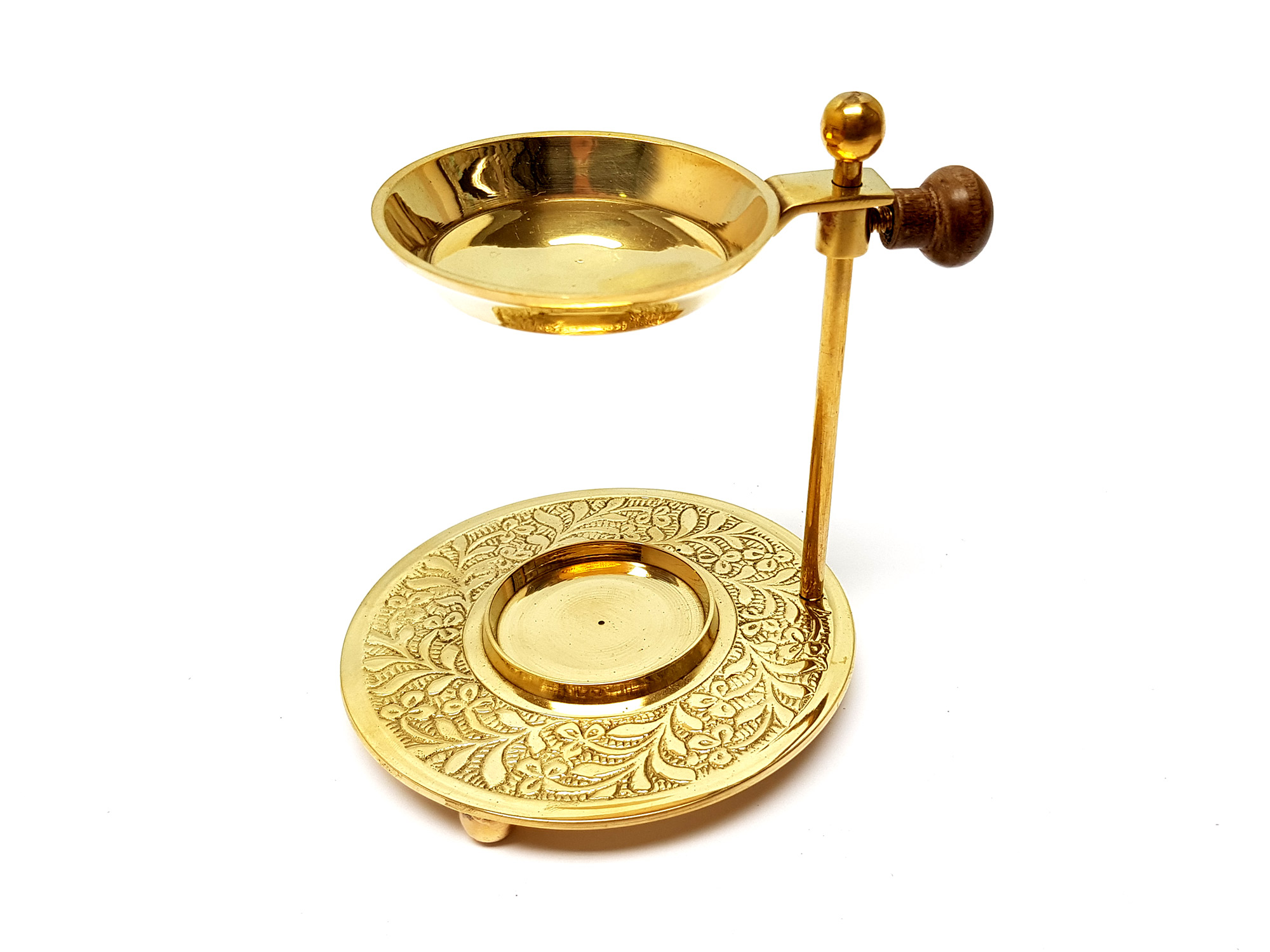Mosazná kadidelnice pro jemnější pálení vykuřovadel s čajovou svíčkou, bez potřeby použití uhlíků.