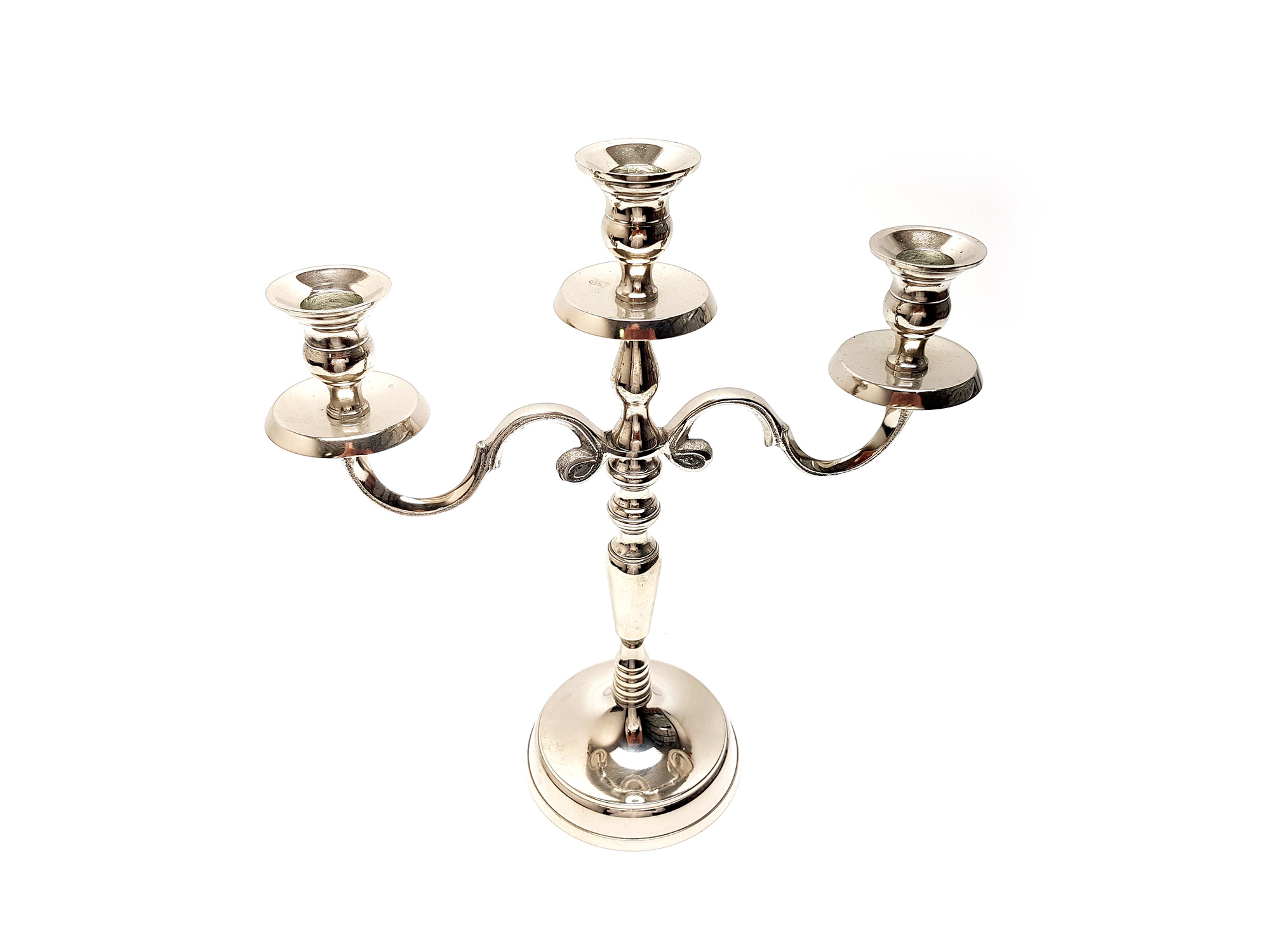 Klasický kovový (poniklovaný) svícen bude dobře vypadat na slavnostní tabuli